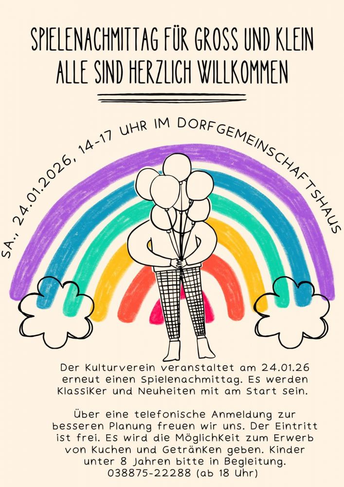 Der Kulturverein veranstaltet am 24.01.2026 erneut einen Spielenachmittag. Es werden Klassiker und Neuheiten mit am Start sein.