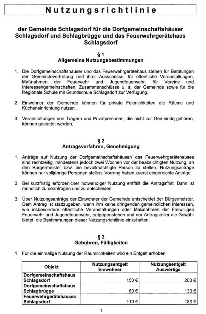 Weitere Satzungen der Gemeinde Schlagsdorf sind über das Amt Rehna abrufbar: