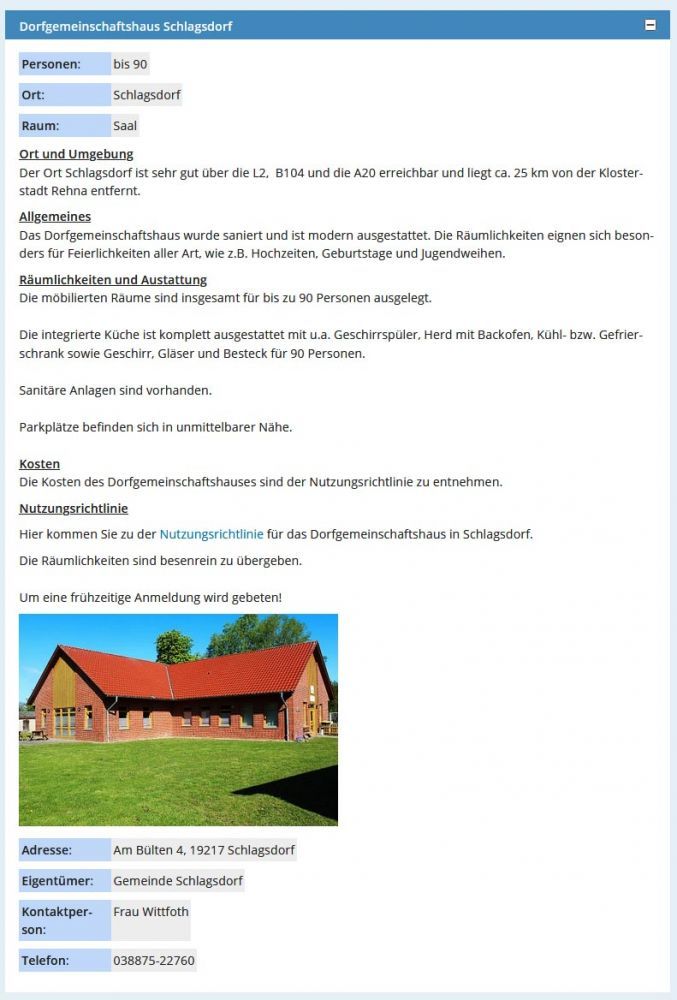 Dorfgemeinschaftshaus der Gemeinde Schlagsdorf,