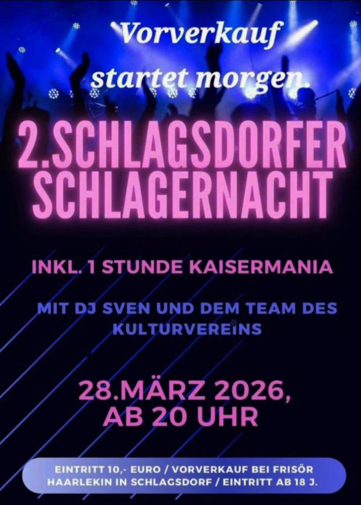 2. Schlagsdorfer Schlagernacht - Vorverkauf
